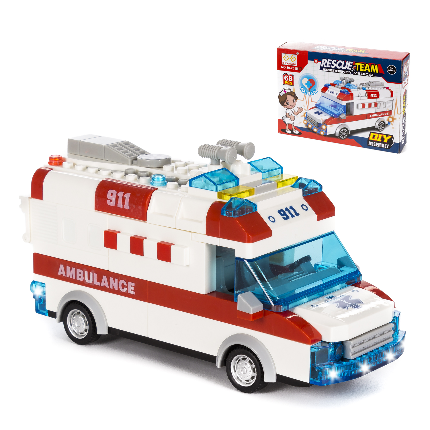 Ambulance avec lumières et effets sonores. À construire, 68 pièces.