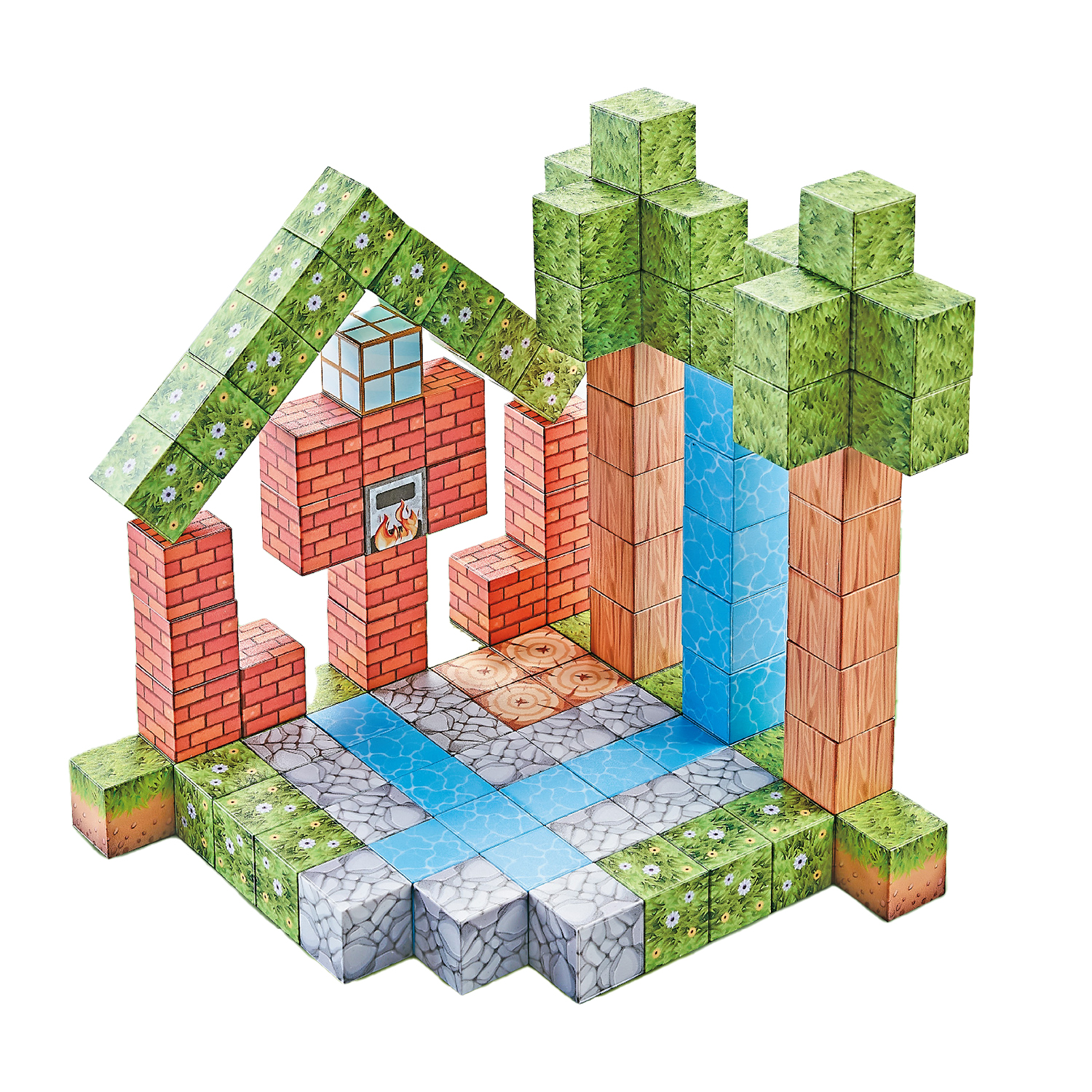 Cubes magnétiques de 2cm. Thème forêt. 108 pièces.