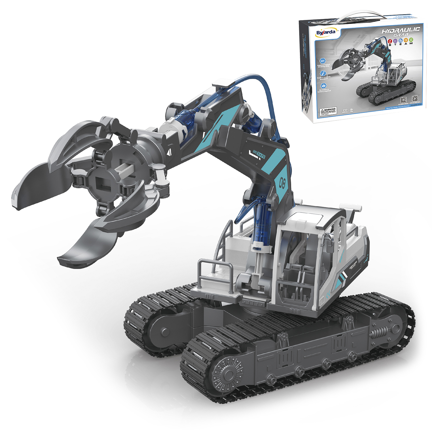 Pelle avec godet hydraulique à construire. • 137 pièces. • Traversez un véritable système hydraulique. • Améliorer les capacités de réflexion logique. • Explorez les principes scientifiques. • Aucun moteur ni batterie requis. • Plateforme tournante à 360º.