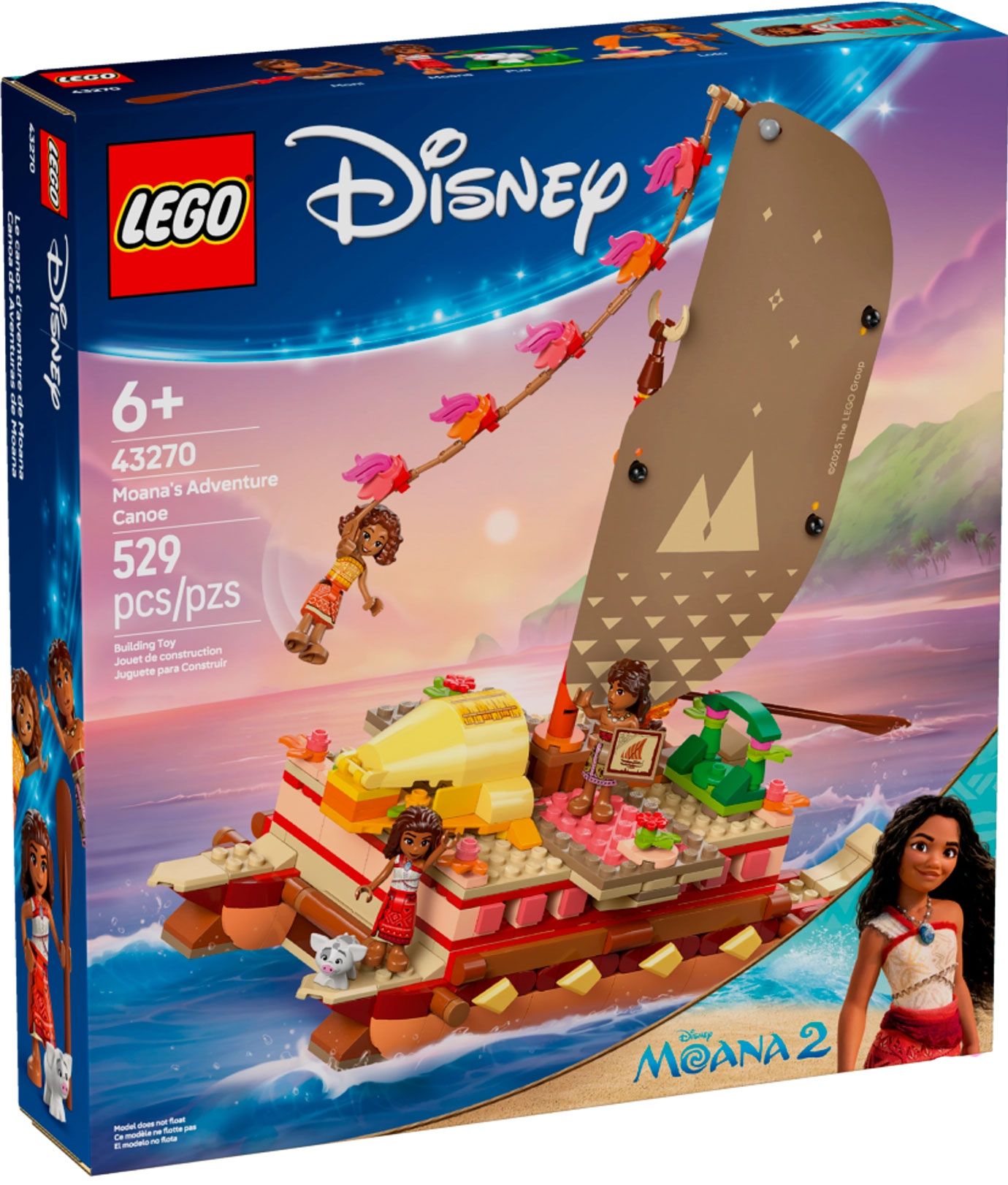 - Set Disney - Ce modèle à construire inclut un bateau à double coque, une voile en tissu à motifs avec une corde lei hulu pour trouver la direction du vent, une petite maison pour Pua le cochon, un appentis pour Vaiana et plus encore
