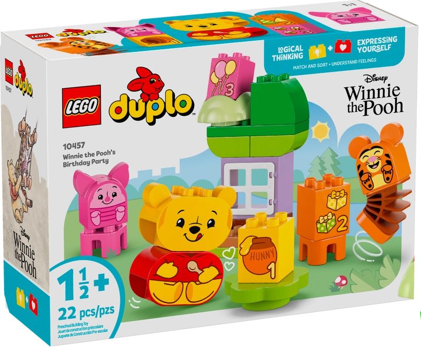 Parents et tout-petits partagent des jeux d'éveil créatifs avec L'Anniversaire de Winnie l'Ourson LEGO DUPLO Disney (10457). Ce jouet de construction éducatif coloré aide les enfants dès 18 mois à affiner leurs compétences essentielles tout en appréciant le jeu d'imagination.