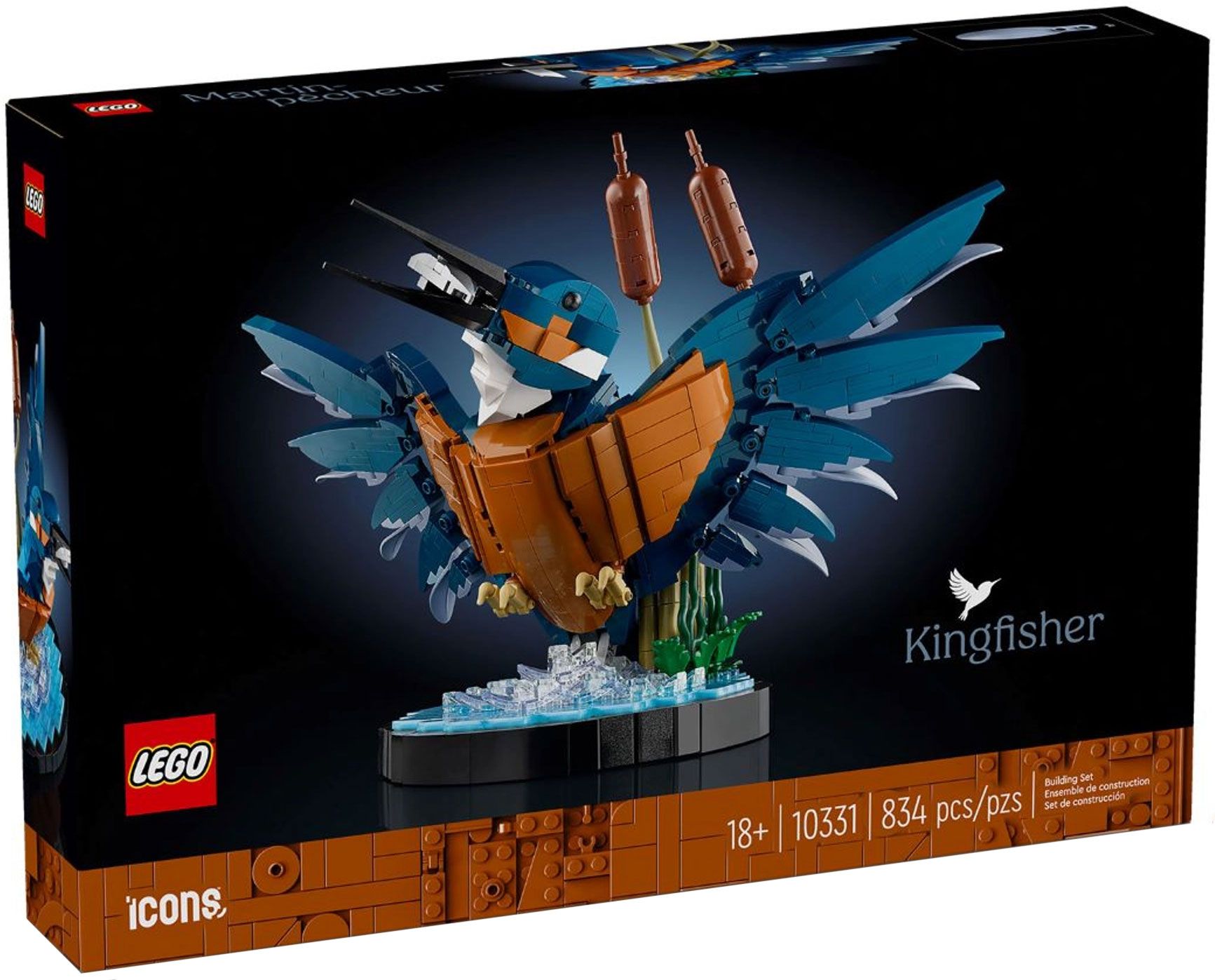 - Projet de construction créative - Ce set inclut tout ce dont vous avez besoin pour réaliser la version LEGO d'un majestueux martin-pêcheur avec un poisson dans le bec, ainsi qu'un décor aquatique qui sert également de présentoir