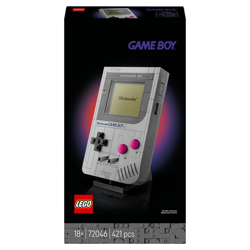Retrouvez l'exaltation de vos premiers jeux sur Game Boy? avec ce kit de construction LEGO® (72046) pour adultes. Magnifique cadeau pour les fans des jeux vidéo Nintendo®, ce set à collectionner est une réplique en briques presque à l'échelle 1:1 de la console de jeu Game Boy originale de Nintendo. Appuyez sur la croix directionnelle, les boutons A et B, puis sur SELECT et START, comme sur la vraie console. Les autres détails emblématiques de la Game Boy incluent le contrôle du contraste, la molette de volume et le port cartouche. Personnalisez votre modèle de Game Boy avec les cartouches de jeux interchangeables The Legend of Zelda?: Link's Awakening et Super Mario Land? ainsi que les écrans lenticulaires correspondants (ou l'écran d'accueil Nintendo). Placez votre création sur le présentoir à construire pour créer une décoration rétro. Retrouvez les instructions étape par étape de ce set LEGO Nintendo dans la boîte et dans l'application LEGO Builder. Contient 421 pièces. Dimensions ? La console LEGO® Nintendo à construire de ce set de 421 pièces mesure plus de 14 cm de haut, 9 cm de large et 3 cm de profondeur et n'intègre pas de fonctions lumière, son ou lecture numérique