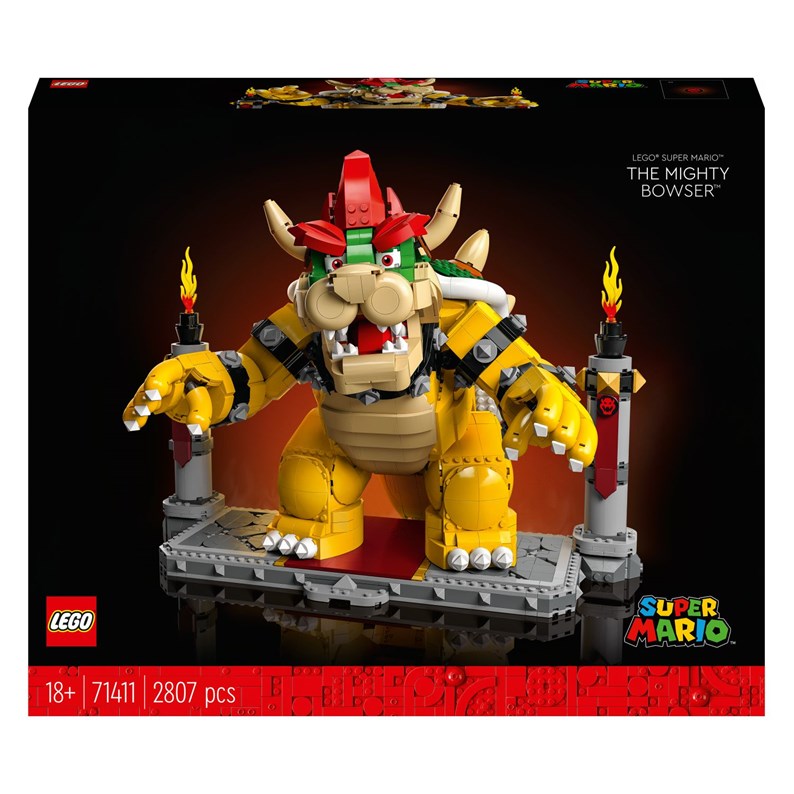 Admirez le roi des Koopas en construisant Le puissant Bowser LEGO Super Mario (71411). Conçu pour le jeu et l'exposition, le set utilise des éléments LEGO inédits (nouveauté d'octobre 2022) pour les pics de Bowser et inclut de nombreuses fonctions, dont un lanceur de boules de feu et un bouton actionnant sa tête et son cou. Ses bras et ses doigts sont également mobiles !
