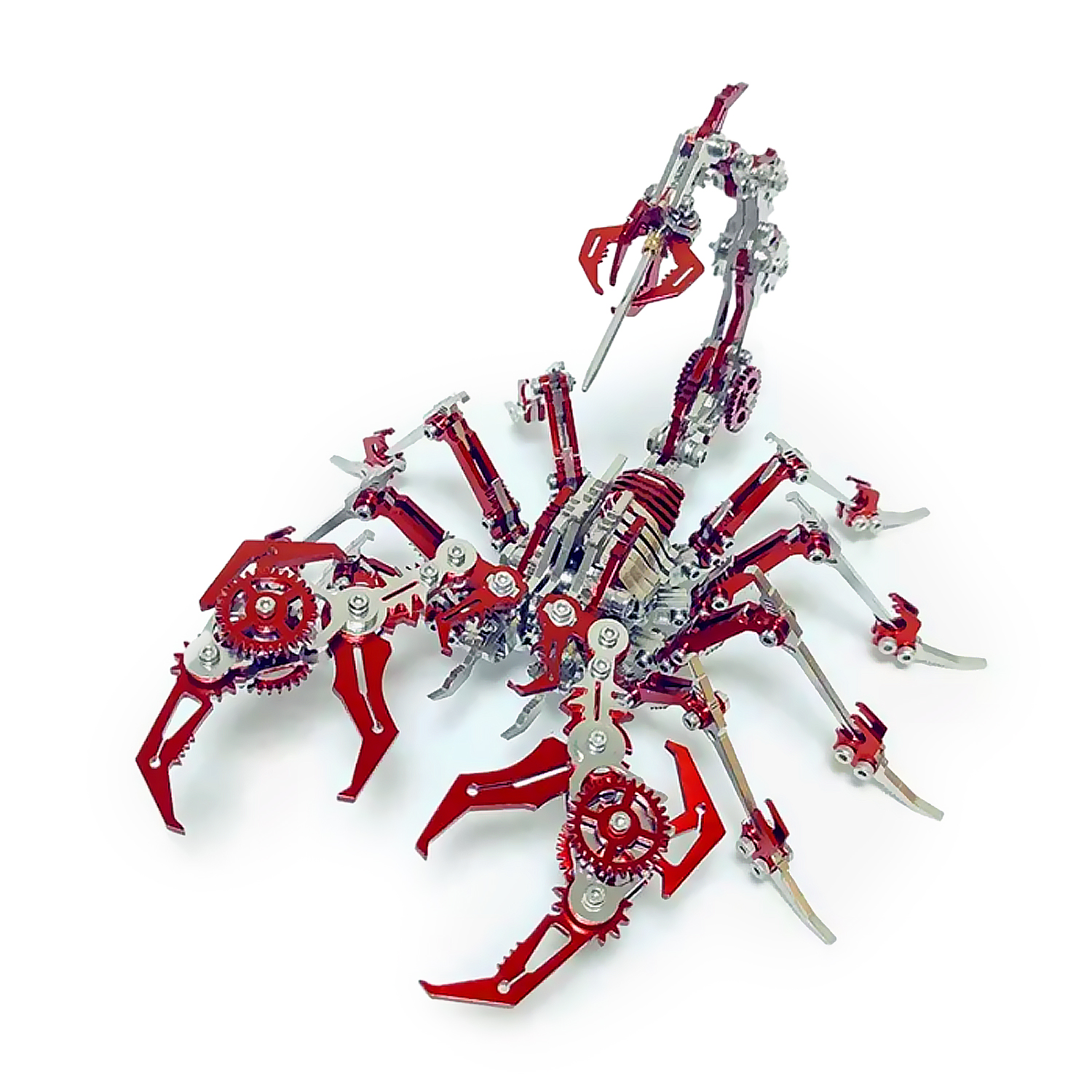 Assemblage 3d en acier inoxydable. Modèle scorpion rouge.