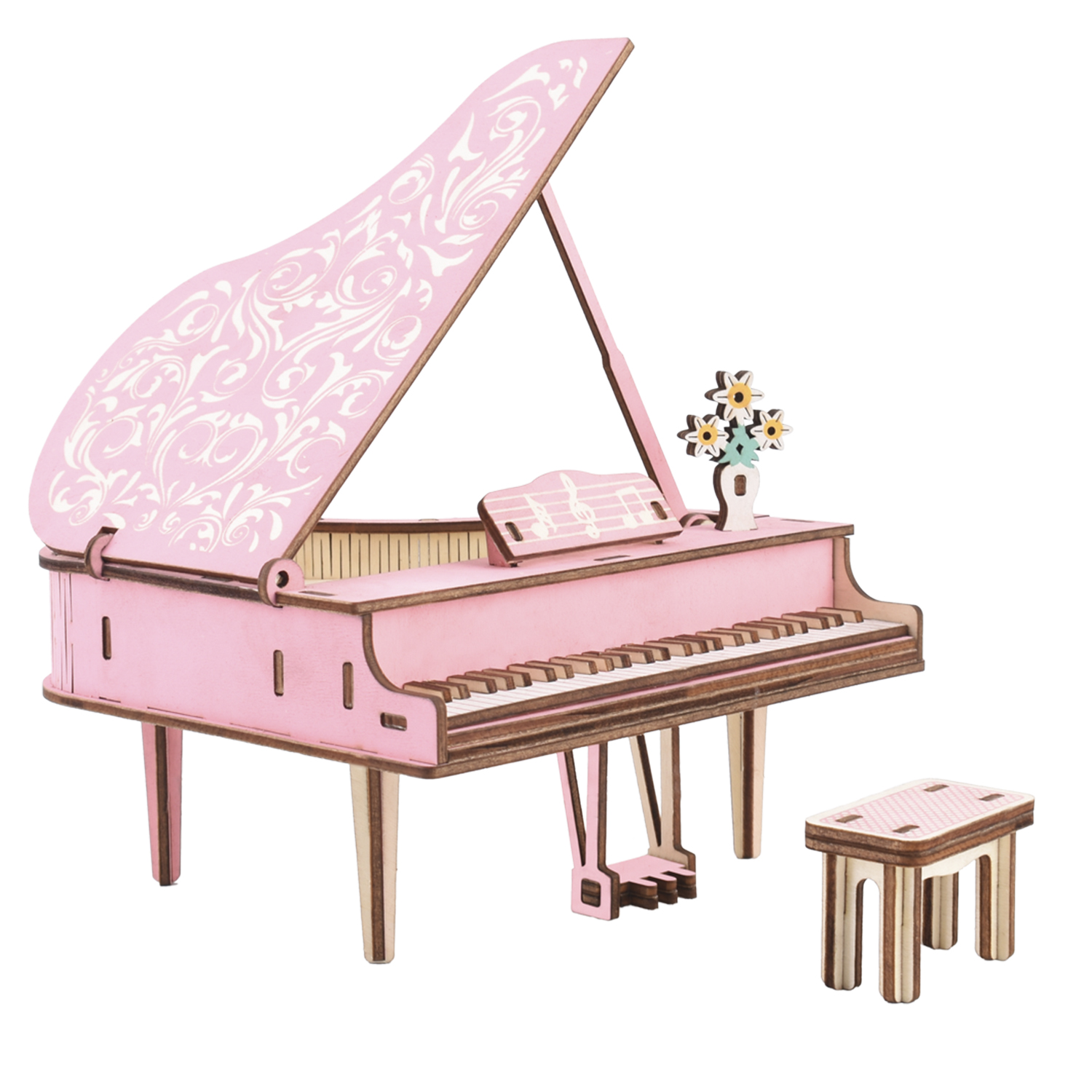 Casse-tête 3d en bois. Piano rose. 78 pièces.