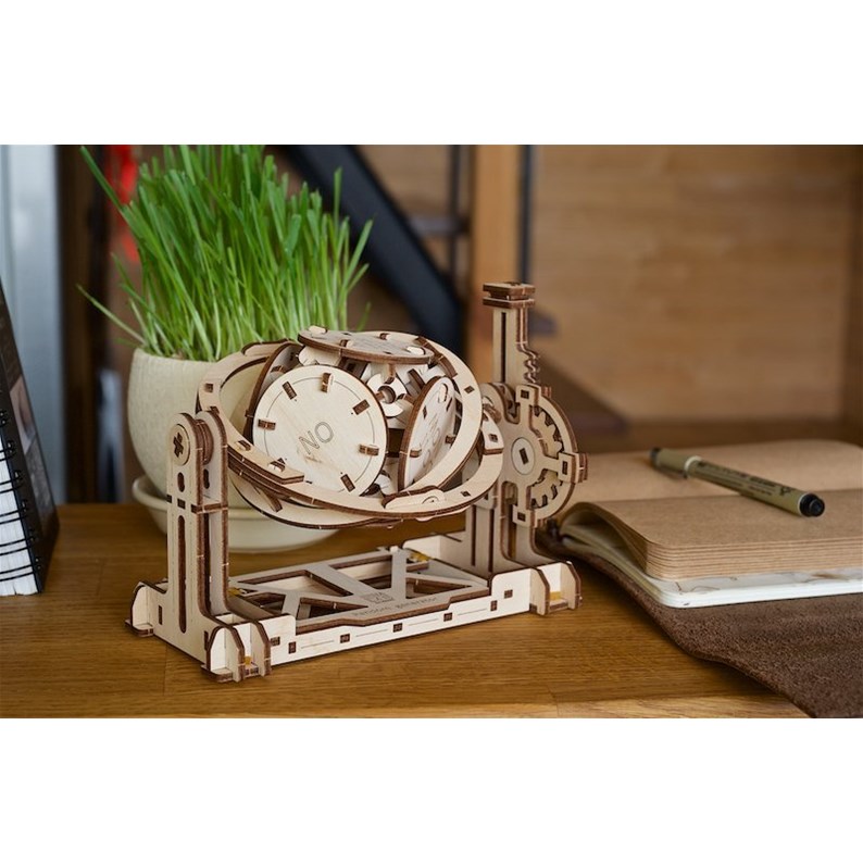 Le Générateur Aléatoire est un modèle pédagogique stylisé, un guide d’étude interactif du mécanisme. En effet il est conçu pour apprendre ses principes essentiels et ses principes de fonctionnement. Le Générateur Aléatoire, comme vous l’avez peut-être deviné d’après son nom, est un appareil qui génère des nombres aléatoires et fournit différents résultats aléatoires basés sur la théorie des probabilités. C’est exactement ce que démontrera le modèle Ugears STEM.