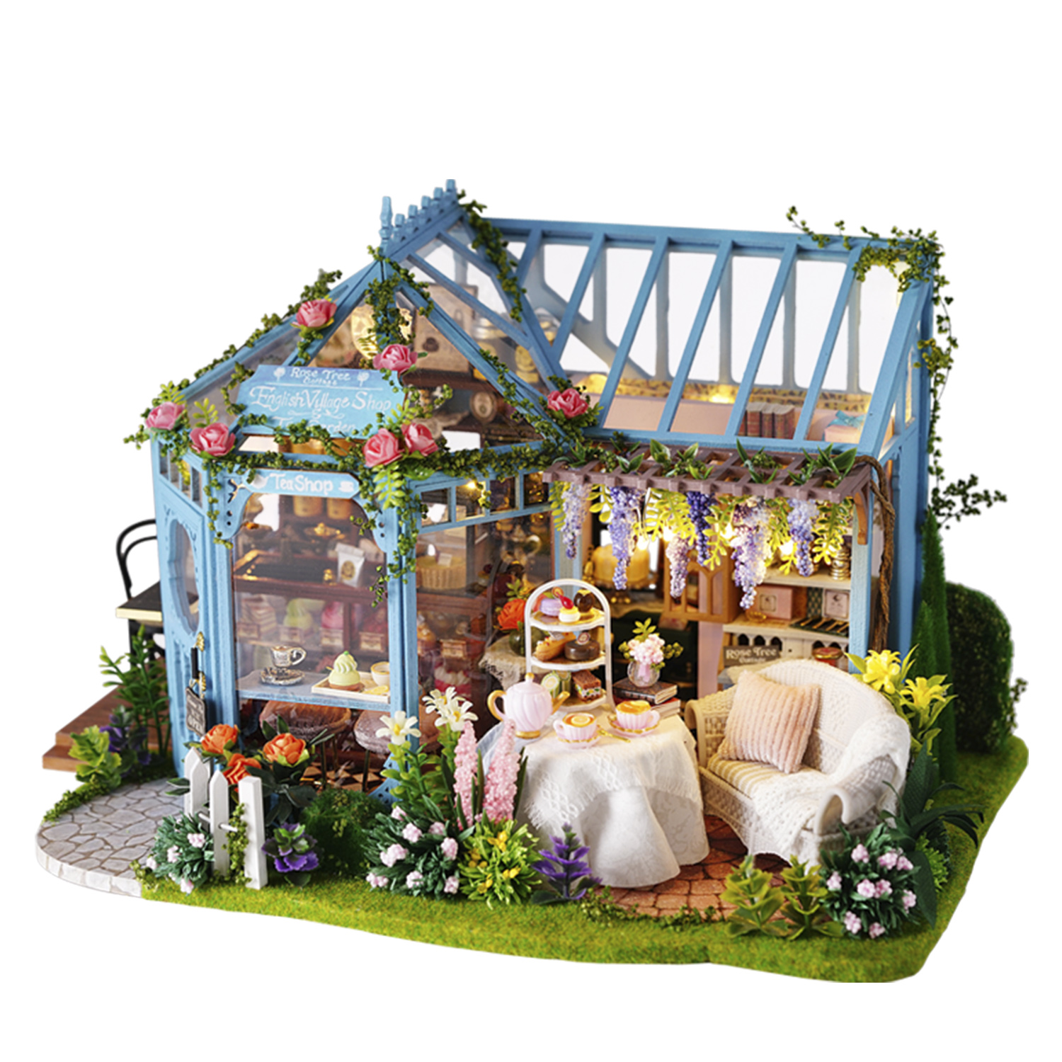 Maquette 3D Rose Garden Tea House • Lumières LED • Musique • Service à thé en résine fini avec gâteau • Caisse enregistreuse rétro miniature • Chaise de jardin en rotin finie et autres accessoires • Livré avec un couvercle transparent, qui peut protéger vos objets artisanaux de la poussière, de la saleté et d'autres dommages • Il a un design très réaliste avec beaucoup de détails. Une fois terminé, il peut être utilisé comme élément de décoration de la maison • Dimensions du modèle assemblé : 29x20x17,8 cm