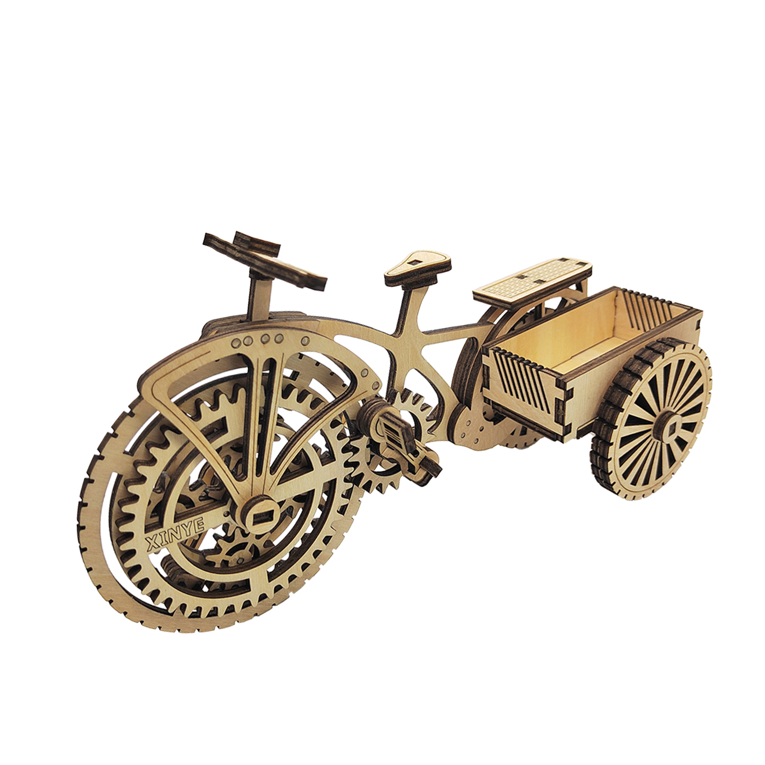 Maquette en bois 3d, avec mouvement mécanique design de porte-cartes triciclo.