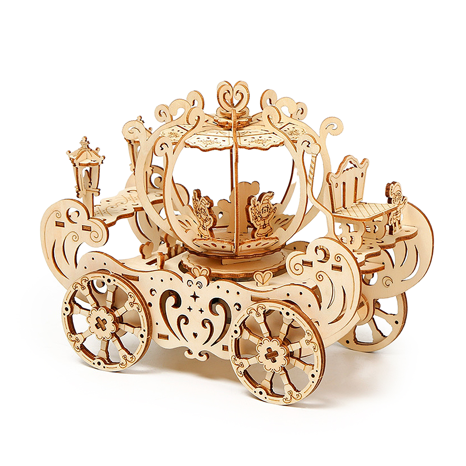 Maquette en bois 3d, conception de carrosse en citrouille.