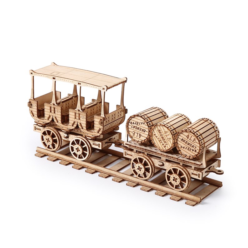 Maquette en bois 3d, design de wagon à vin avec mouvement mécanique. 278 pièces.