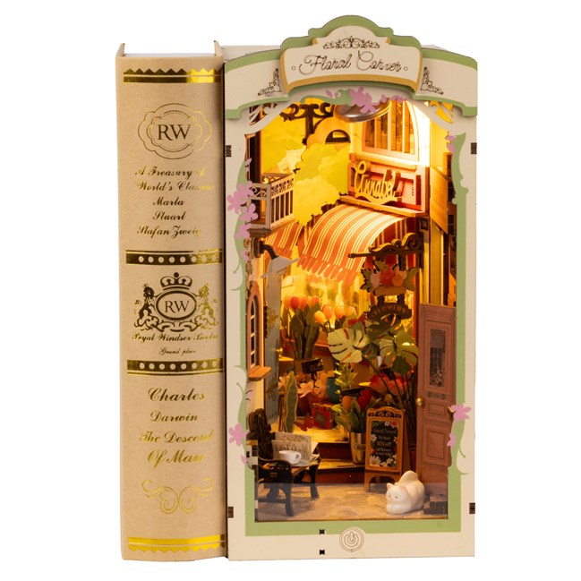Maquette serre-livres lumineuse en bois rue fleurie Rolife