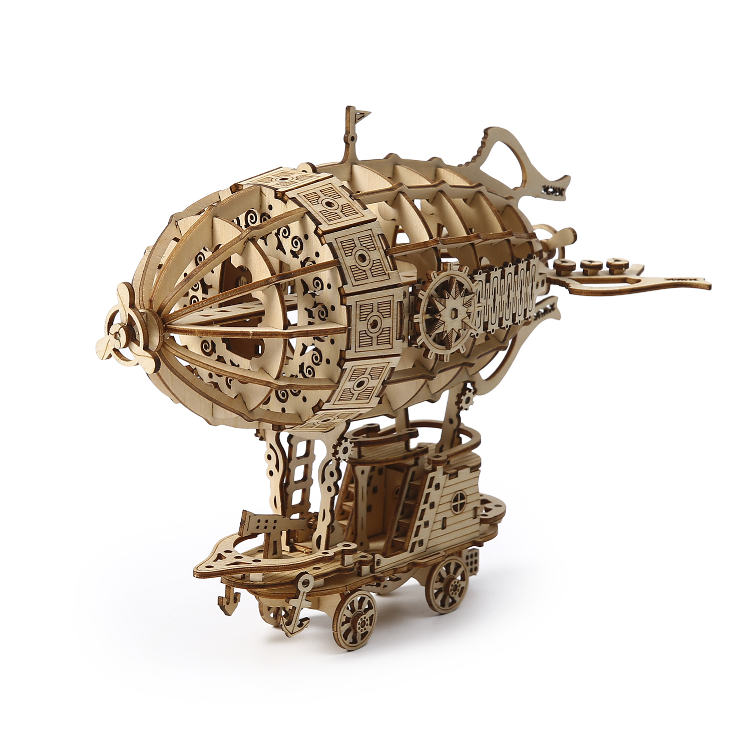 Modèle en bois 3d, conception de dirigeable avec mouvement mécanique.