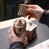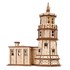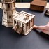 Fabriquée en bois composite de 3 mm de qualité artistique, la maquette mesure 19,8 ? 24 ? 11,6 cm, soit la taille idéale pour une table de nuit. La maison du gardien et la tour sont percées de fenêtres, tandis que la maison est dotée d’une cheminée et d’une entrée en gradins. Les gravures au laser sur les surfaces extérieures reproduisent l’aspect de la pierre et de la brique. Outre la coupole amovible, la porte de la maison du gardien s’ouvre et se ferme à l’aide d’un mécanisme à élastique et les fenêtres de la maison du gardien sont dotées de rideaux qui se balancent lorsqu’on les incline.