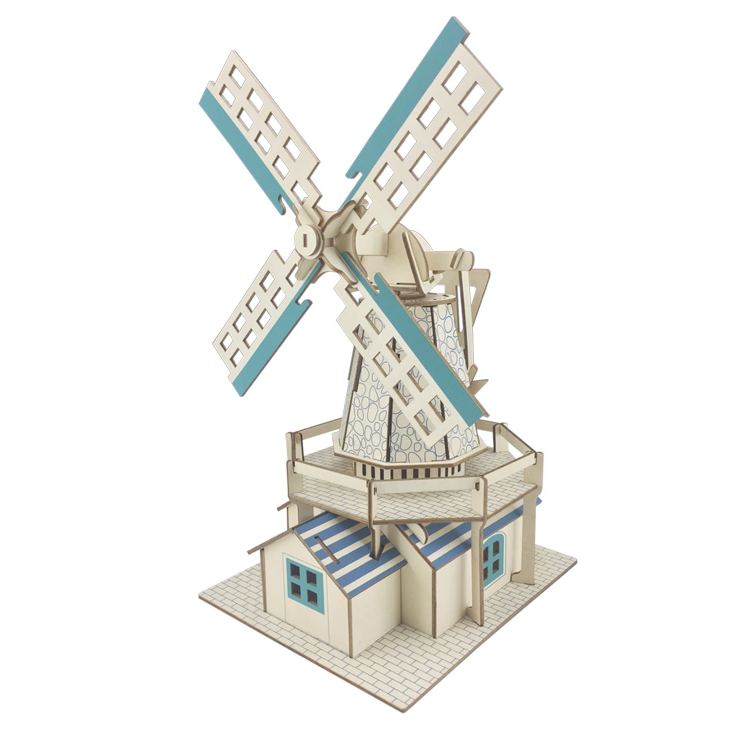 Puzzle 3d en bois. Moulin à vent hollandais. 77 pièces.