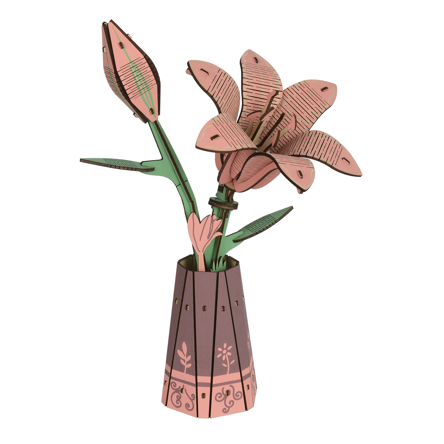 Puzzle 3d en bois. Vase avec lys. 69 pièces.