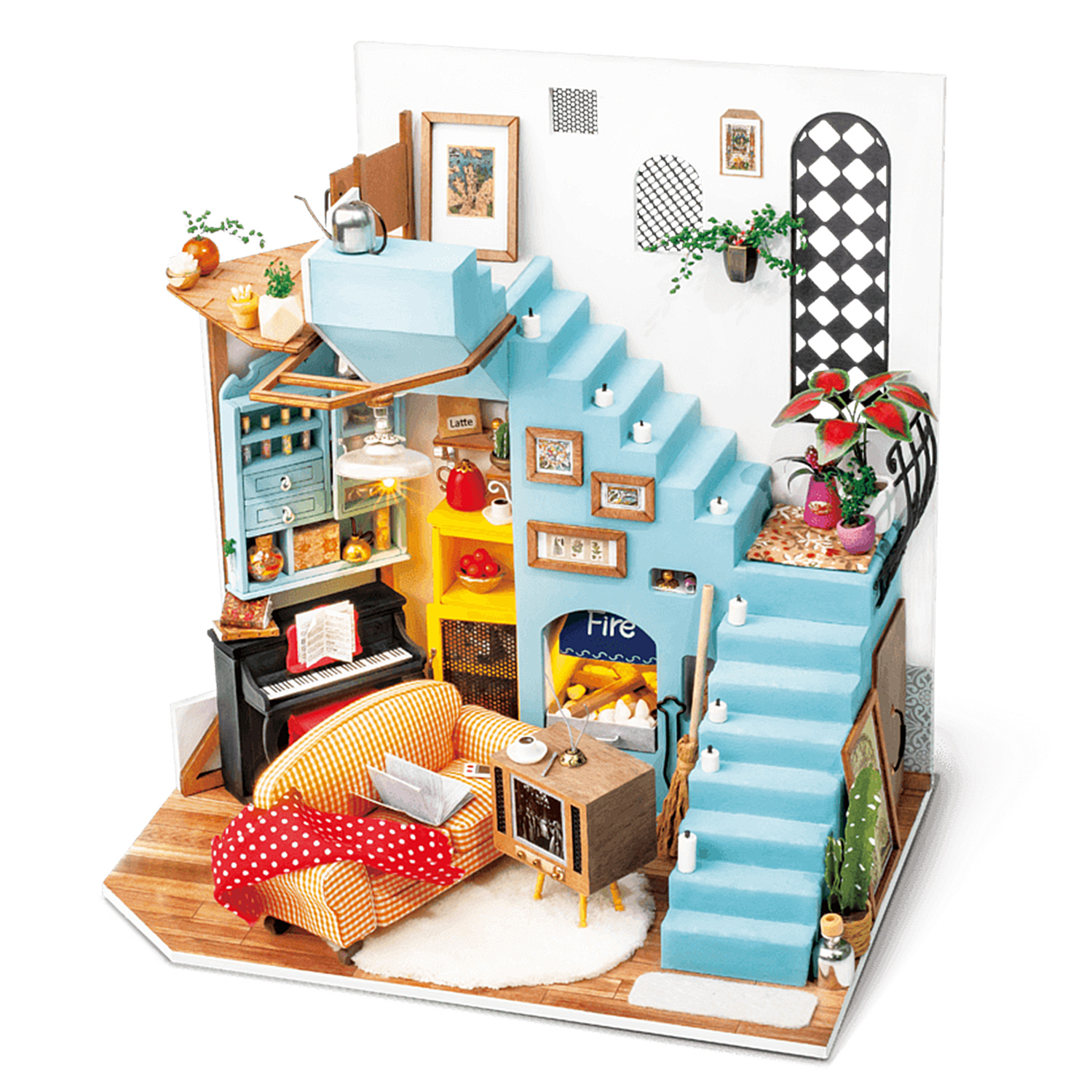 Salon joys peninsula. Maison de poupées maquette en bois à peindre et à monter.