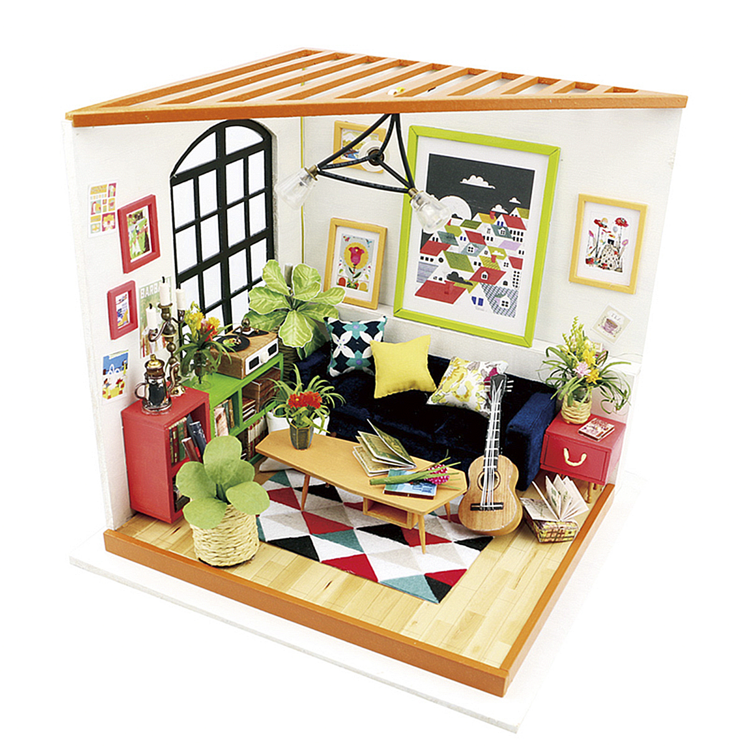 Salon locuss. Maquette en bois de maison de poupée à peindre et à assembler.