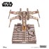 Cette maquette deux-en-un comprend un socle inspiré de la surface de l’Étoile de la mort. À l’intérieur du socle, un mécanisme pivotant motorisé reproduit les manœuvres du X-Wing, telles qu’elles apparaissent dans le film original Star Wars. Le chasseur et le socle se connectent et se détachent à l’aide d’un aimant. Plusieurs éléments mobiles ajoutent au réalisme et au plaisir : la verrière du cockpit s’ouvre, les trains d’atterrissage avant et arrière peuvent être retirés, un bouton en forme de R2-D2 situé sur le dessus du fuselage ouvre une trappe inférieure, mais la principale caractéristique mécanique réside dans les ailes en S qui s’ouvrent et se verrouillent en position d’attaque. La maquette est alimentée par trois piles AA ou via une connexion USB Type-C (piles et connecteur USB non inclus).