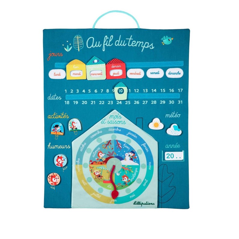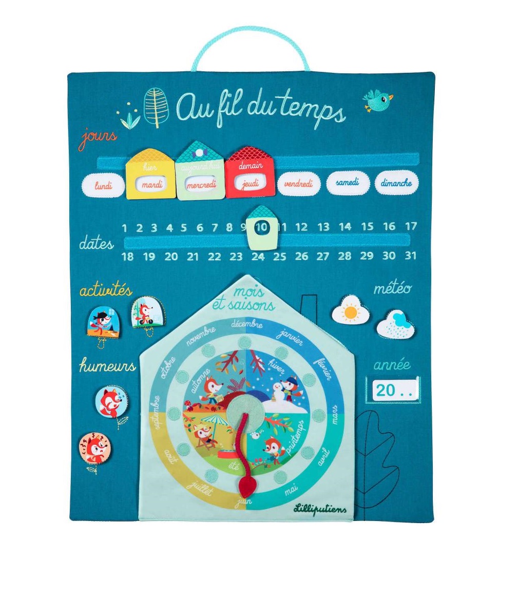 Les enfants ne naissent pas avec la notion du temps : pour eux, hier c’est le passé et demain signifie maintenant. Ce calendrier tout doux et coloré permet de mieux comprendre le concept du temps qui passe, des jours, des mois et des saisons. Equipé de cartes et de 'scratch' (attaches tissu auto-agrippantes), il vous permettra d'aider votre enfant à comprendre quel jour on est et quelles sont ses activités de la semaine, le tout en s'amusant !Cet article ne convient pas aux enfants de moins de 3 ans.Age minimum recommandé : 3 ansAge maximum recommandé : 6 ans
