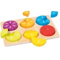 Les blocs en bois représentent des portions allant de 1 à 6 de manière claire et simple pour les plus jeunes. Ce jeu permet à la fois de s'initier aux fractions, mais aussi de développer la dextérité des enfants.