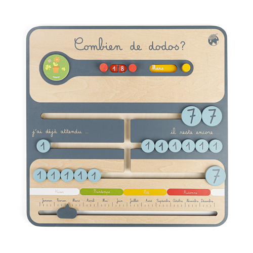 Combien de dodos avant les vacances ? Combien de dodos sont déjà passés ? Ce semainier adapté aux enfants propose un support ludique et clair pour leur permettre de comprendre le temps qui passe.