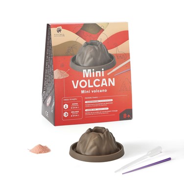 Le Mini Volcan est une expérience de chimie rigolote qui utilise 2 produits réactifs très simples: le bicarbonate et le vinaigre (une base et un acide). C’est aussi une modélisation miniature d’un phénomène physique macro : l’éruption volcanique.