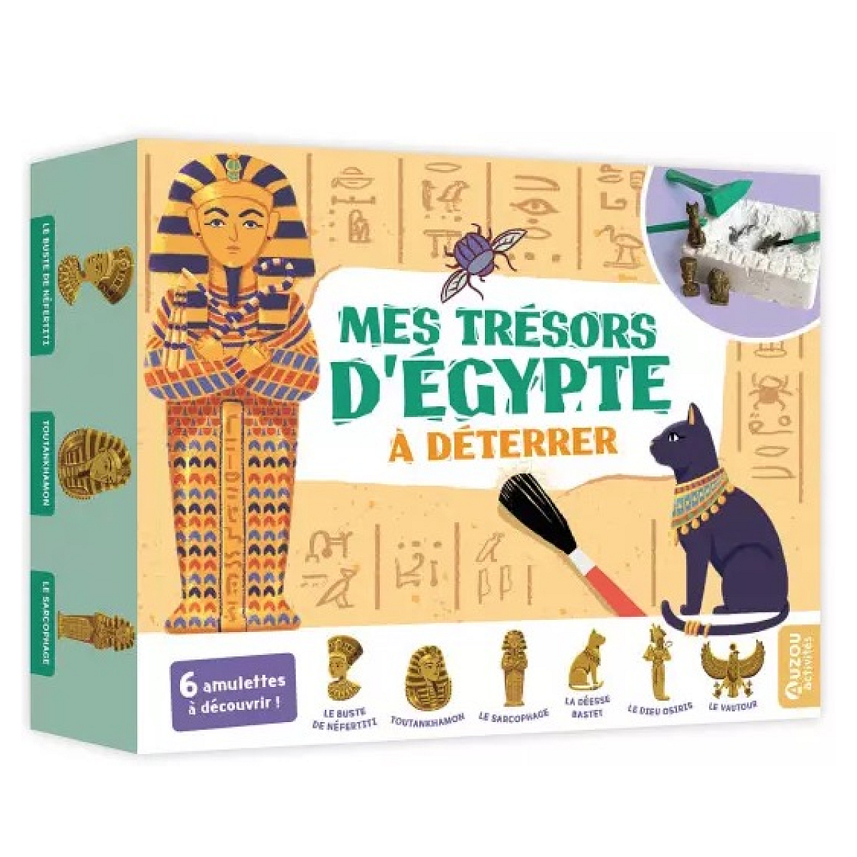 Creuse le bloc de plâtre grâce à ton marteau, ton burin et ton pinceau et découvre 6 trésors d'Égypte ! Le livret pédagogique qui accompagne ton activité te permettra den savoir plus sur l'Égypte et ses symboles.