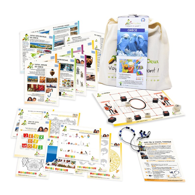 Plongez au coeur de la Grèce sans quitter votre salon ! Voyageons en jouant est un VoyaJeux unique, conçu pour éveiller la curiosité des enfants et rassembler la famille autour d’activités créatives, de découvertes culturelles et de jeux traditionnels.