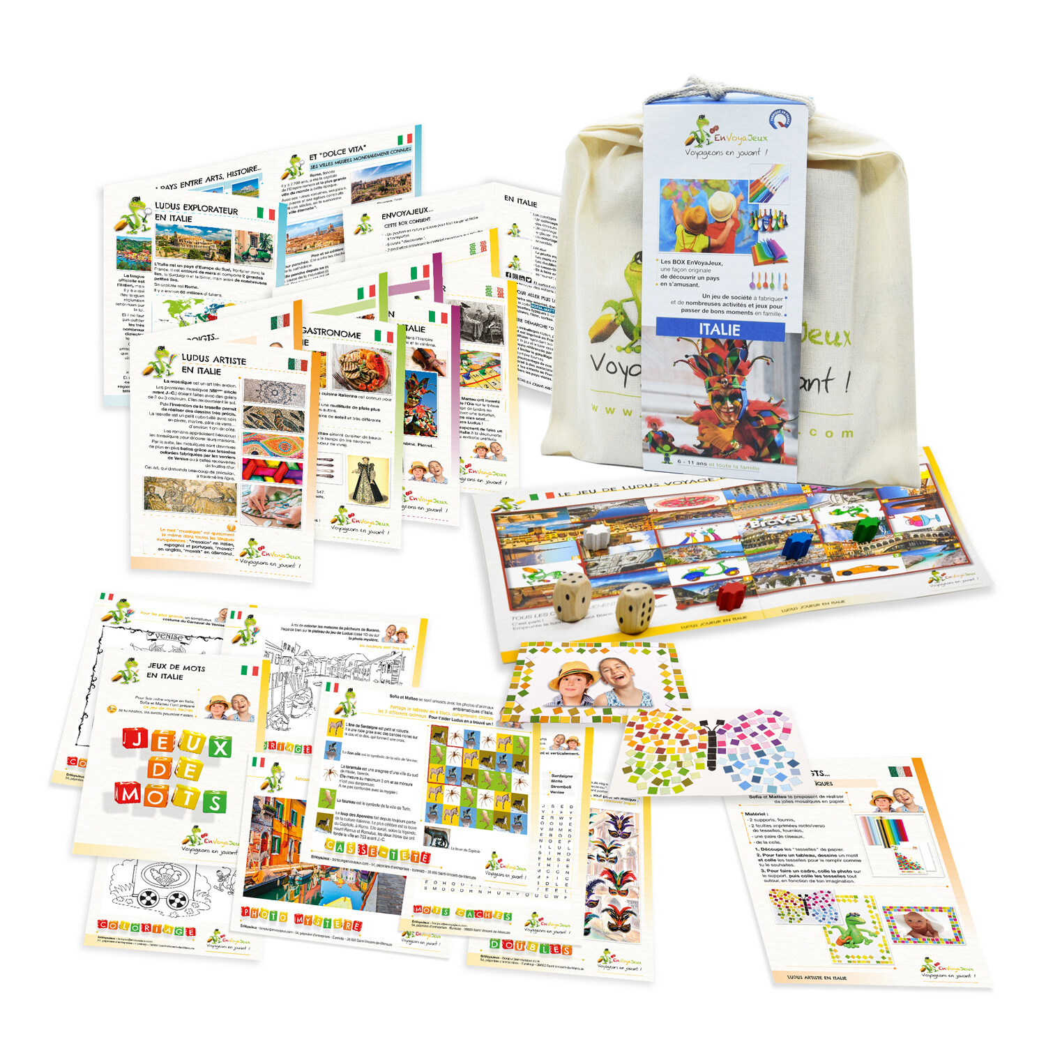 Partez à la découverte de l'Italie sans quitter votre salon ! Voyageons en jouant est un VoyaJeux unique, conçu pour éveiller la curiosité des enfants et rassembler la famille autour d’activités créatives, de découvertes culturelles et de jeux traditionnels.