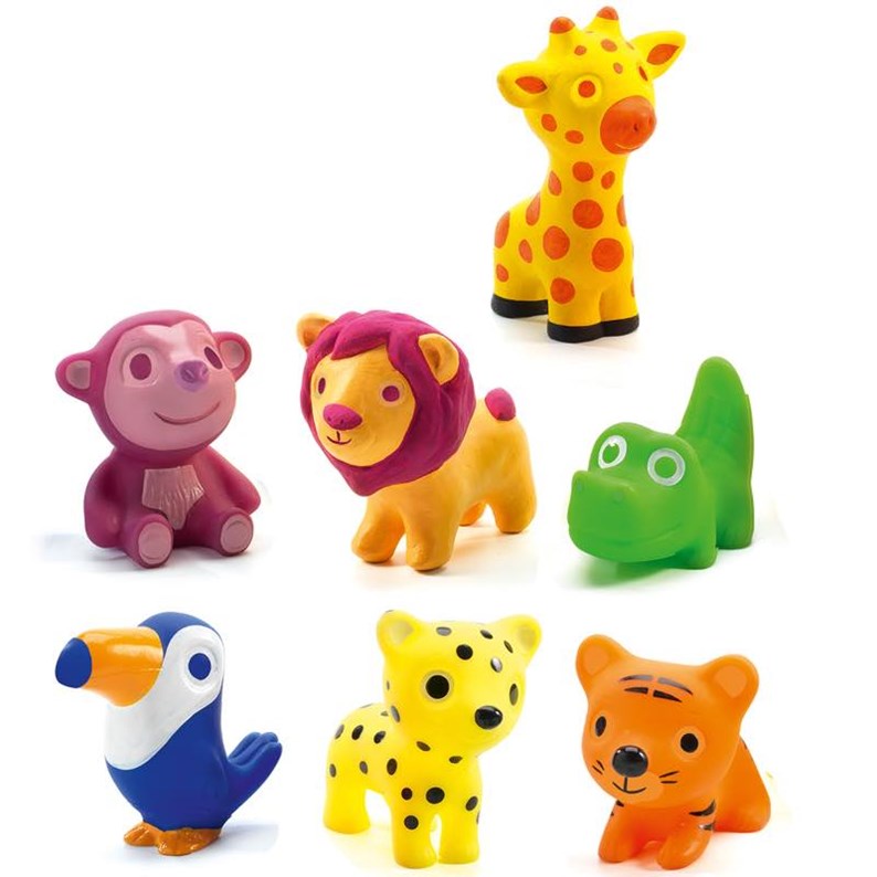 Découvrez les figurines d'animaux de la savane Troopo savana de Djeco, 7 animaux en plastique dans un tube pour s'amuser et se raconter des histoires.Ce tube comprend 7 animaux de la savane en plastique souple et très colorés : girafe, singe, lion, crocodile, toucan, tigre et lionceau.Votre enfant va s'amuser avec ces animaux et les machouiller sans danger.
