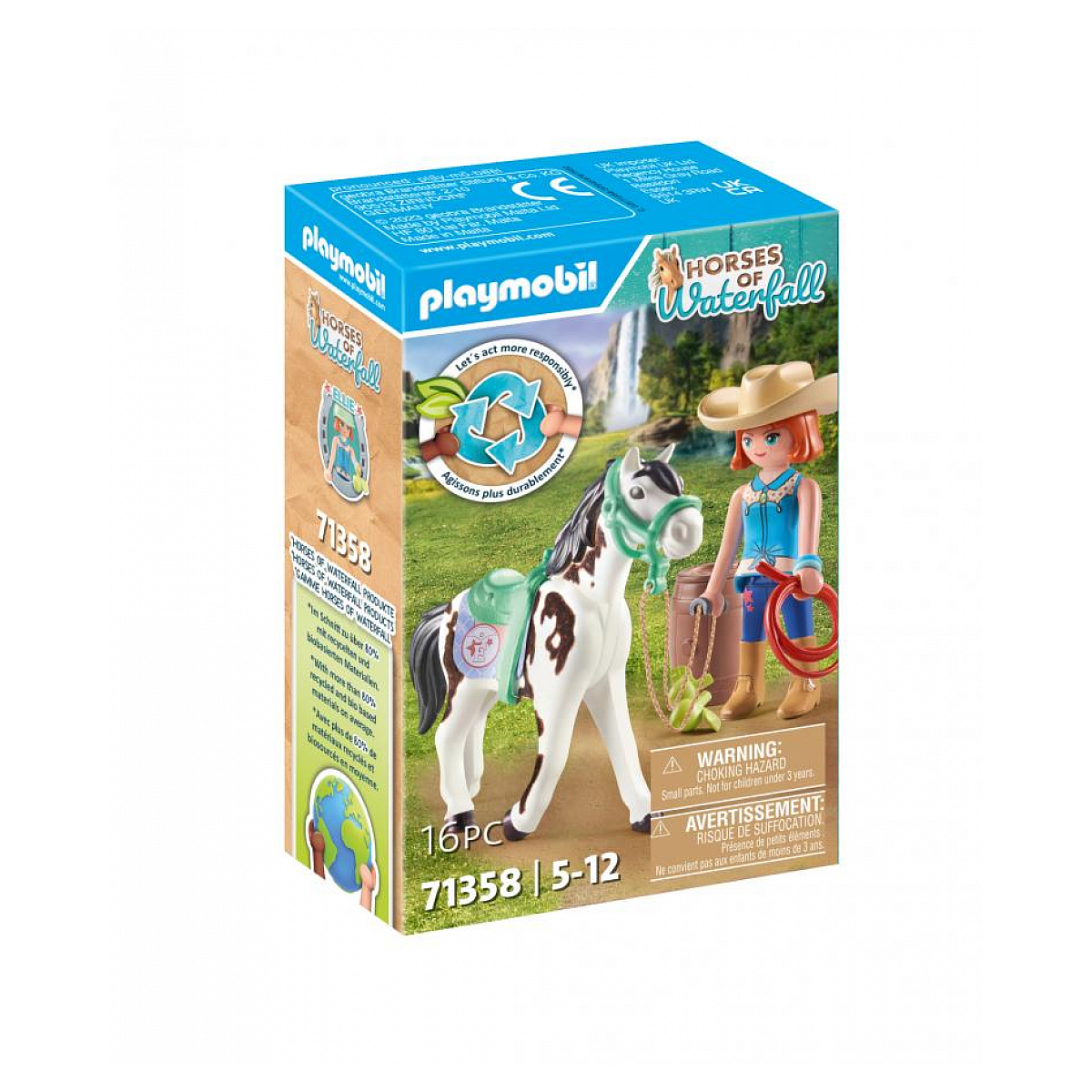 Tu aimerais découvrir l'équitation western ? Alors viens d'entrainer avec Ellie et sa jument Sawdust ! Ellie, une des cinq héroïnes de l'univers Horses of Waterfall, est passionnée par l'équitation Western et elle s'entraîne dès qu'elle le peut avec sa jument Tennessee Walker. Après l'entrainement, Sawdust a bien besoin d'être récompensée. Elle est toute douce et adore être caressée. Le coffret comprend Ellie, sa jument Sawdust qui a un pelage à effet velours, un lasso, un tonneau et des accessoires pour l'équitation western. Les nouveaux coffrets Horses of Waterfall sont fabriqués avec plus de 80% de matériaux recyclés ou biosourcés en moyenne.
