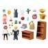Bip ! La famille Keller est derrière la caisse de leur épicerie . Contient trois personnages, un comptoir, une caisse, une étagère et des accessoires (pain, sac de jute, panier, viande, tabliers..). Á partir de 4 ans.
