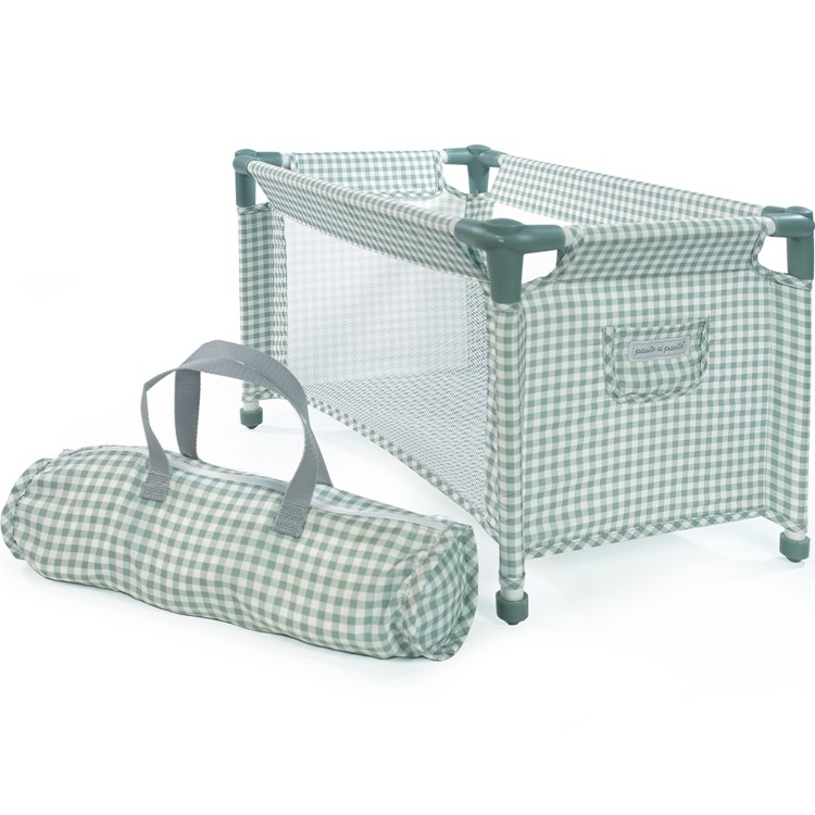 Un cadeau pour les petits compagnons de bébé : Optez pour le Lit de voyage pour poupée Tom Vichy vert de Pasito a Pasito pour prendre soin des compagnons de votre bambin.
