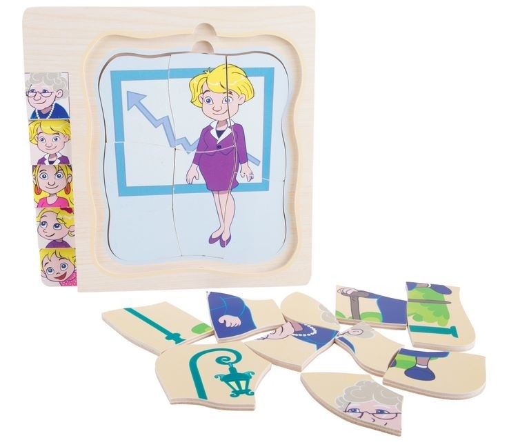Ce puzzle qui relate les 5 étapes de la vie de la Femme (du bébé au 3ème âge), permet d'appréhender les différentes étapes de la vie et les métamorphoses liées à l'âge.