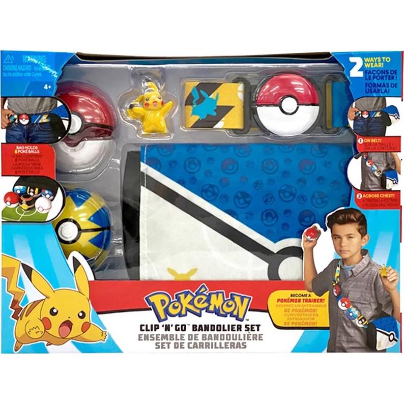 - Contenu : 1x Pokéball Clip 'n Go, 1x figurine de 5 cm, 1x ceinture Poké, 1 sac bandoulière pouvant contenir 6 Pokéballs Clip 'n Go