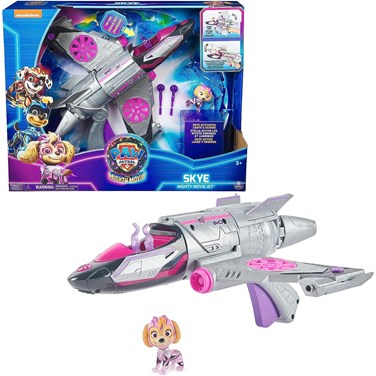 Spin Master 2012439 La Pat Patrouille Véhicule Deluxe Stella - - Faites équipe avec Skye et son jet de sauvetage PAW Patrol : The Mighty Movie, pour des aventures de sauvetage passionnantes tout droit sorties du grand écran ! Vêtue de son uniforme rose PAW Patrol : The Mighty Movie, avec des parties translucides et un casque cool, accrochez votre figurine Stella dans le cockpit de son avion, pour illuminer plusieurs zones du corps de Stella et de son avion à réaction, regardez ses pattes s'illuminer, entendez de la musique et des effets sonores ! Lorsqu'il s'agit d'une mission de sauvetage pleine d'action, tenez la poignée de l'avion de Stella et inclinez-la vers le haut, le bas, la gauche et la droite pour activer les effets sonores. Ensuite, appuyez sur le levier de la poignée pour faire rouler les ailes de son jet et entendre d'autres effets sonores, alors que vous vous envolez d'une mission à l'autre ! En cas de problème, chargez les 2 lanceurs de projectiles et appuyez sur les boutons de chaque aile pour lancer les projectiles afin d'éliminer les obstacles et de sauver la situation ! - - - À partir de 3 ans