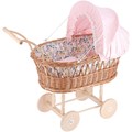 Ce joli landau en bois et en osier de la marque Petitcollin est conçu pour les poupées mesurant jusqu'à 40 cm. La structure de ce landau est fabriquée en osier, le châssis et les roues sont en hêtre massif. Pour que la poupée soit installée confortablement, le landau dispose d'une literie en tissu à petites fleurs. La capote en tissu est rabattable.