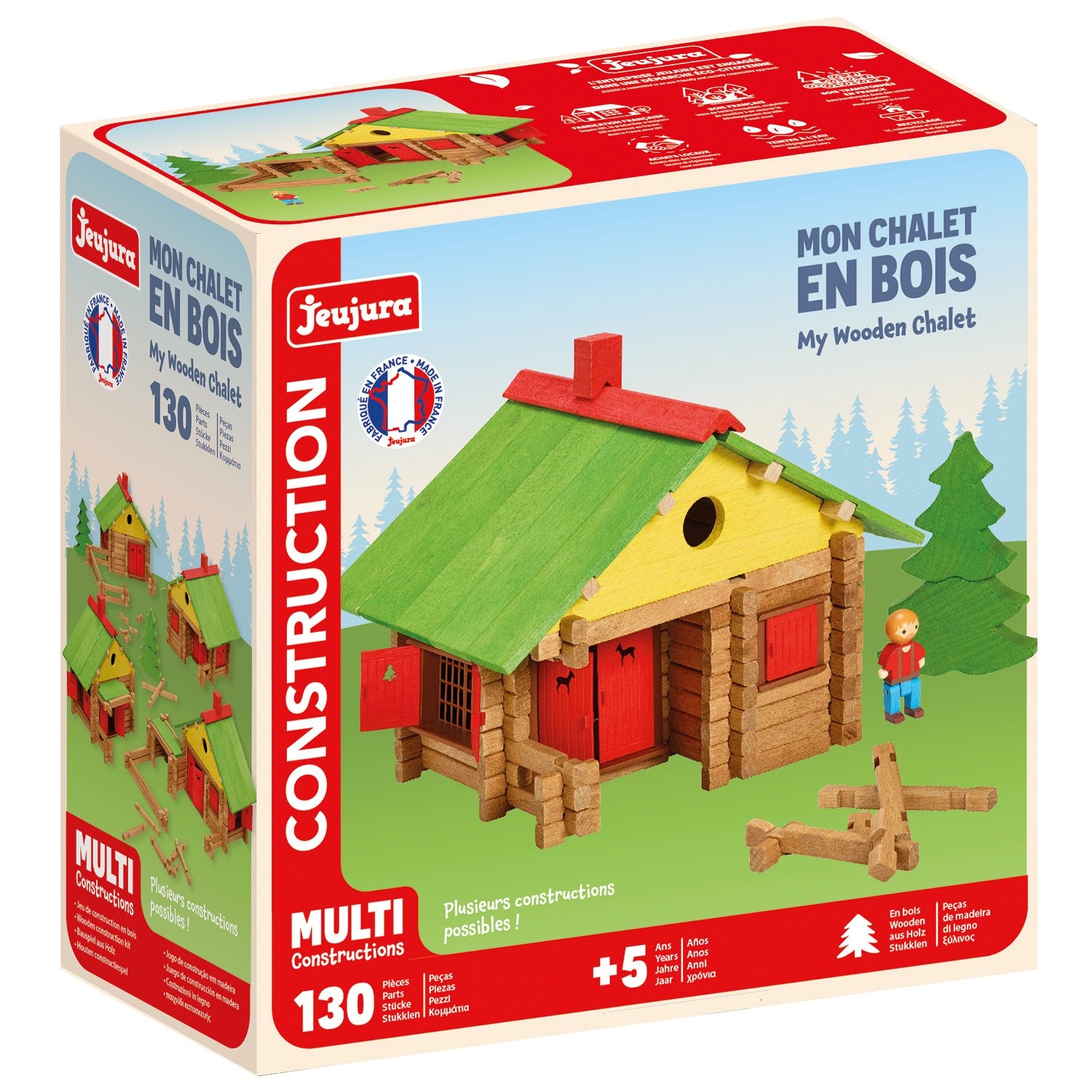 Mon chalet en bois 130 pièces, un jeu de construction fabriqué en France par Jeujura. Référence 1802.Cet article ne convient pas aux enfants de moins de 3 ans.Age minimum recommandé : 4 ansAge maximum recommandé : 10 ans