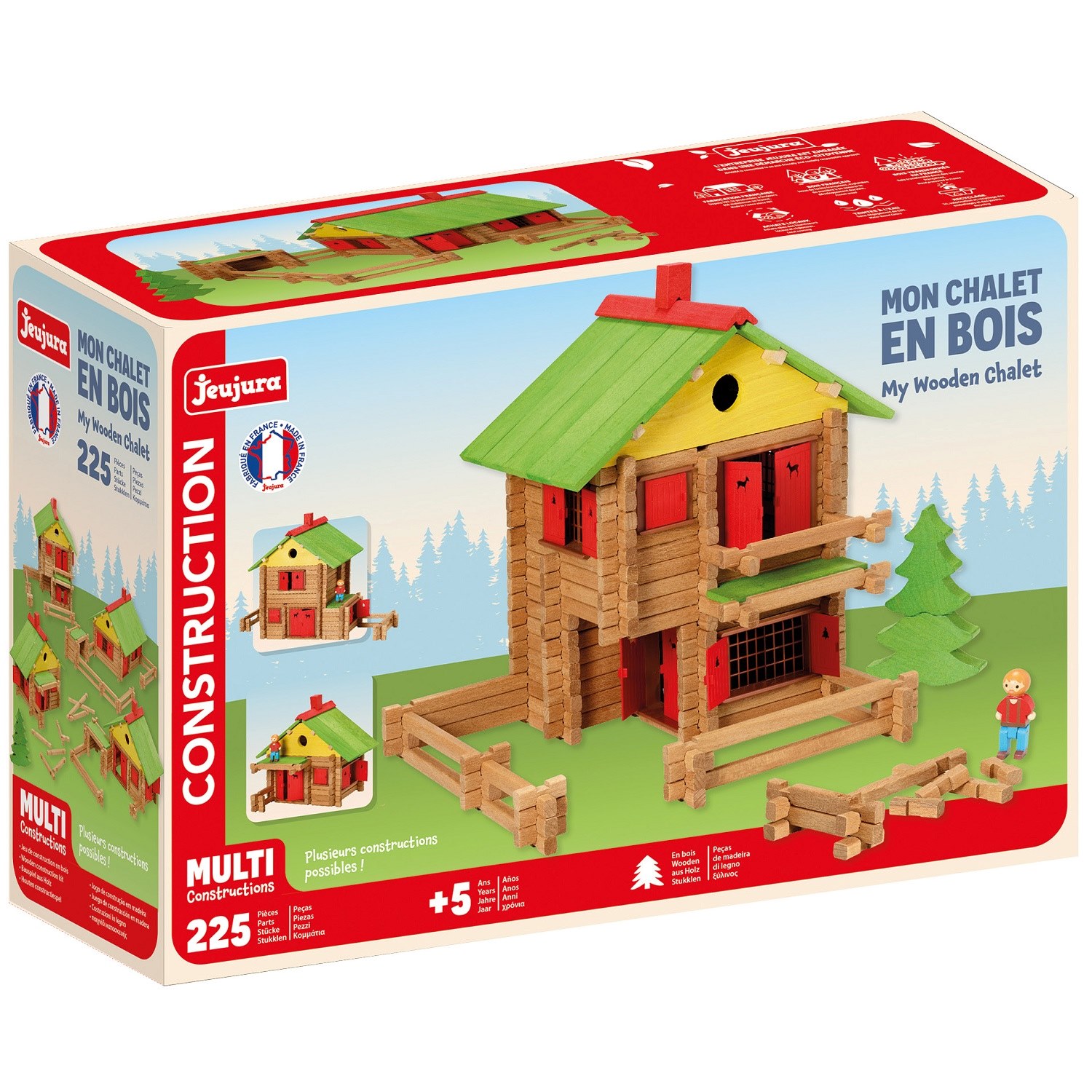 Mon chalet en bois 225 pièces, un jeu de construction fabriqué en France par Jeujura. Référence 1804.Cet article ne convient pas aux enfants de moins de 3 ans.Age minimum recommandé : 4 ansAge maximum recommandé : 10 ans