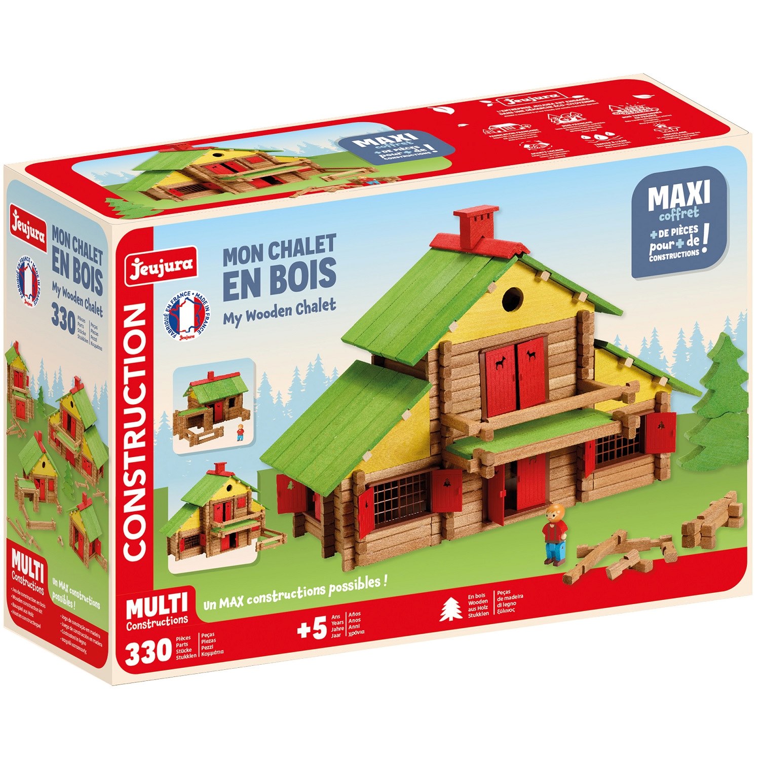 Mon chalet en bois 330 pièces, un jeu de construction fabriqué en France par Jeujura. Référence 1805.Cet article ne convient pas aux enfants de moins de 3 ans.Age minimum recommandé : 4 ansAge maximum recommandé : 10 ans