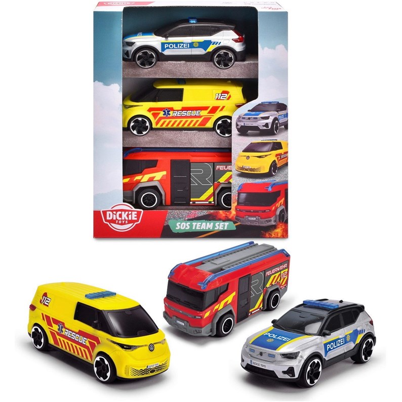 Set de 3 pièces comprenant une voiture de police, une ambulance et un véhicule d'intervention des pompiers (avec roue libre).