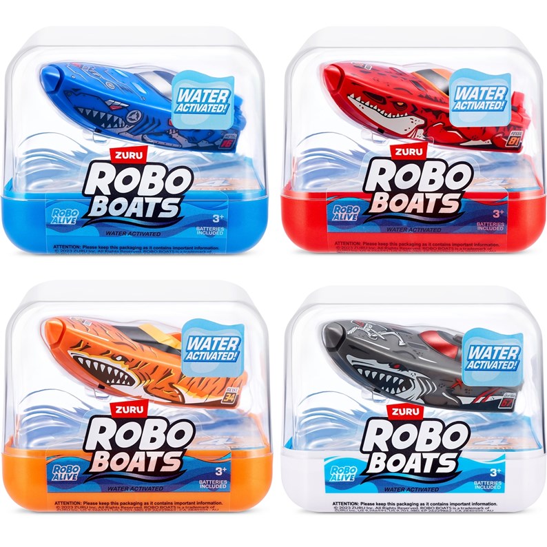 Ces bateaux activés par l'eau foncent dans l'eau comme de vrais bateaux. Observe-les se déplacer dans trois directions différentes grâce à des bobines électromagnétiques et à deux technologies brevetées. 4 Robo-Boats épiques sont à collectionner pour une ultime course de Robo Boats.