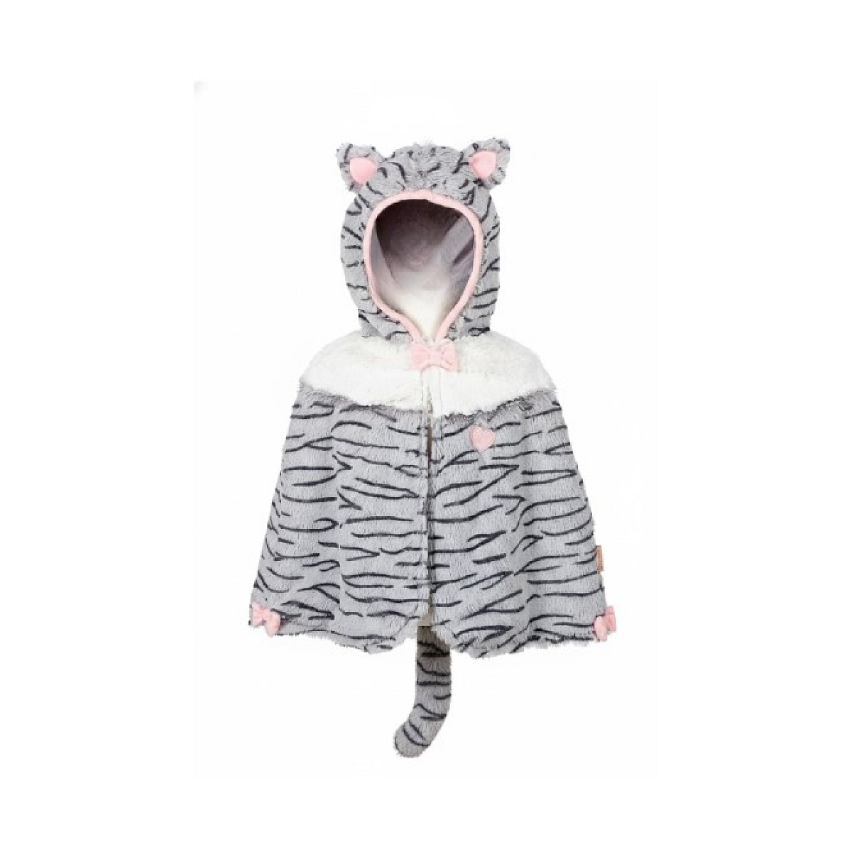 Avec cette cape votre enfant sera le plus mignon des petits chats. cape avec capuche à oreilles de chats. rayé gris et détails rose.