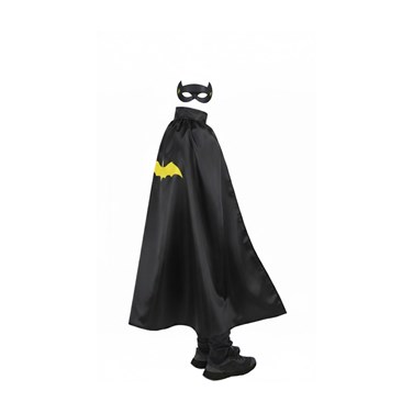 TAILLE ENFANT- convient à partir de 4 ans et jusque 10 ans environ. Magnifique cape en tissu satiné doublé, qui s'attache à l'aide d'un scratch. La cape est réversible, un côté chauve souris, un côté noir uni. Un joli masque noir complète ce déguisement. Longueur de la cape: 70cm