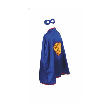 TAILLE ENFANT- convient à partir de 4 ans et jusque 10 ans environ. Magnifique cape en tissu satiné doublé, qui s'attache à l'aide d'un scratch. La cape est réversible, un côté bleu super héros, un côté rouge uni,. Un joli masque bleu complète ce déguisement. Longueur de la cape: 70cm