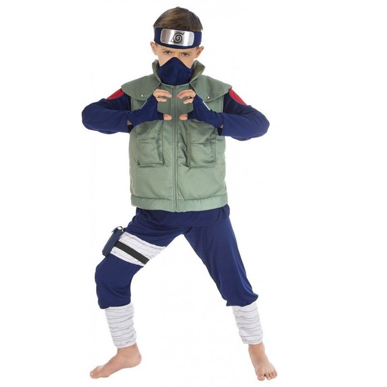 Ce déguisement pour enfants, sous licence officielle Naruto, se compose d'un haut, une veste, un pantalon, un bandana, un masque, des gants, une pochette et une sacoche de ceinture (perruque non incluse).
