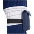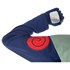 Le haut du costume à manches longues est bleu foncé avec des motifs rouges sur le haut des bras. Le pantalon également bleu foncé comprend de faux bandages sur le bas des jambes et un bandage au niveau du genoux droit. Le gilet, sans manche, est vert et accompagné de sangles sur l'avant. Les gants sont des mitaines bleues et argent. Ils sont complétés par un masque bleu, qui cachera le bas du visage de l'enfant. Enfin, un bandeau bleu viendra compléter l'ensemble.