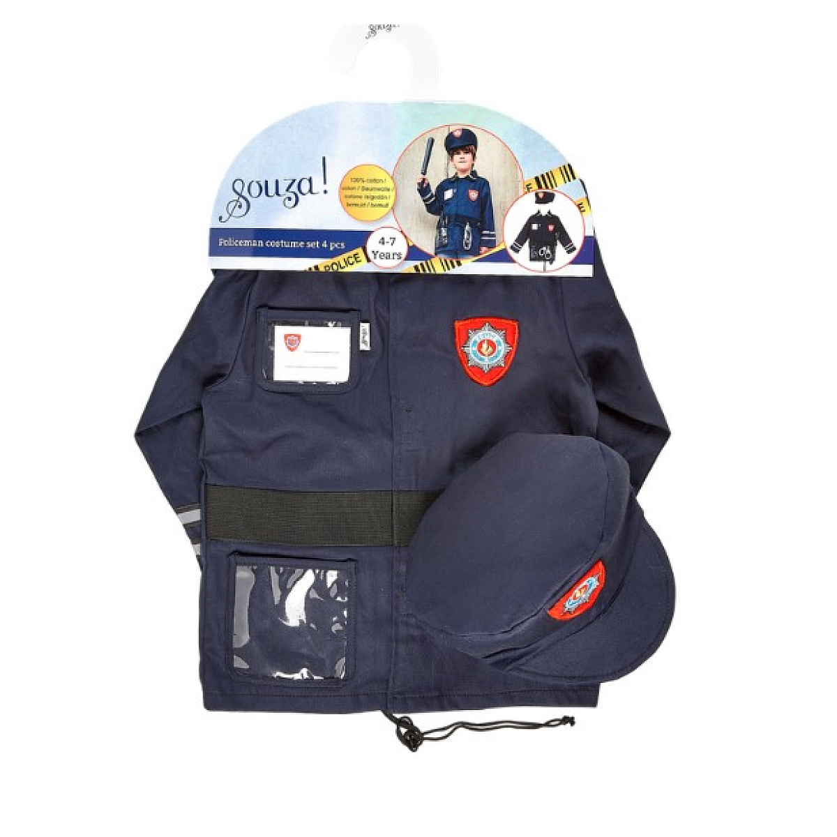 Venez découvrir le plaisir de jouer au policier et au voleur grâce à ce déguisement Policier de Souza. Dès 4 ans, votre enfant s'amusera à revêtir son uniforme et stimulera son imagination en s'inventant un tas de scénarios extraordinaires. Il imitera ainsi ses héros de séries préférées et jouera à attraper les bandits, tel un véritable shérif ! Ce costume est livré avec différents accessoires pour encore plus de réalisme : un casque, un extincteur et une hache.