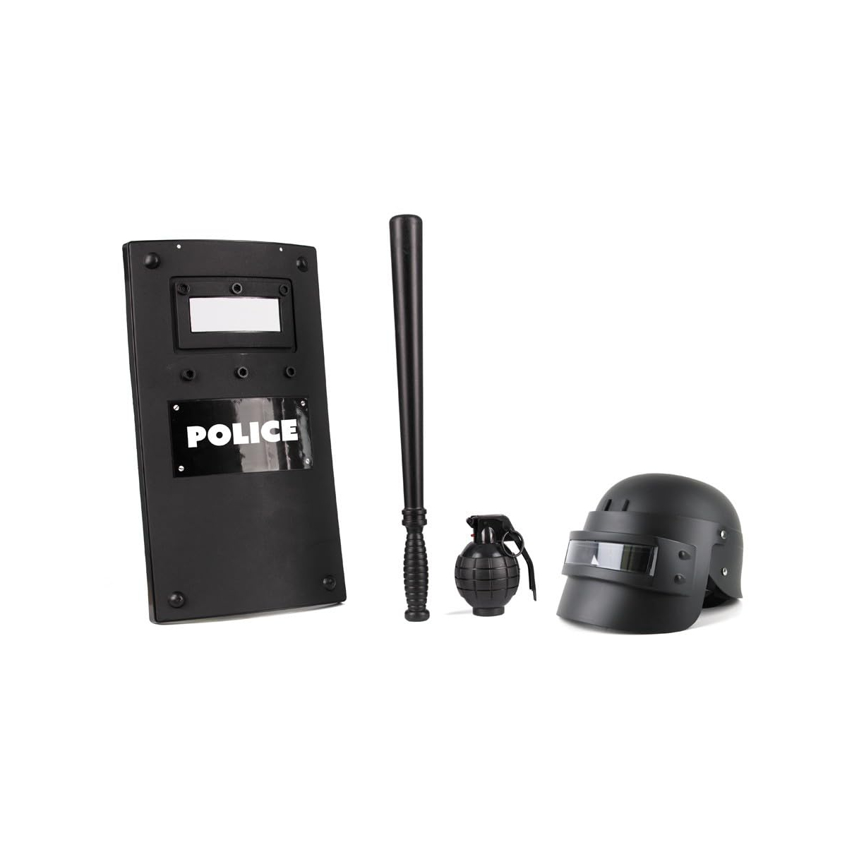 Ce set de policier 4 pièces pour enfant comprend un bouclier, un casque, une matraque et une grenade factice pour une immersion totale dans le rôle des forces de l'ordre. Le bouclier noir, orné de l'inscription POLICE, possède une poignée à l'arrière pour une prise en main facile. Le casque intégral, avec visière transparente, assure un look réaliste tout en laissant le visage bien visible. La matraque légère et la grenade factice noire viennent compléter cet équipement pour rejouer les scènes d'intervention en toute sécurité. Idéal pour les jeux de rôle, les carnavals ou pour tous les passionnés d'aventures urbaines et d'actions héroïques.